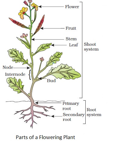 (ii) The shoot system: It is an aerial system, usually above the soil and originates from the plumule. It consists of stem, branches, leaves, flowers, fruits and seeds.